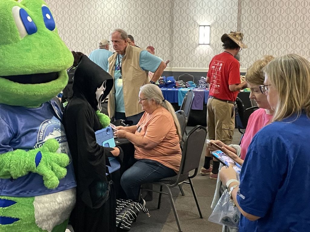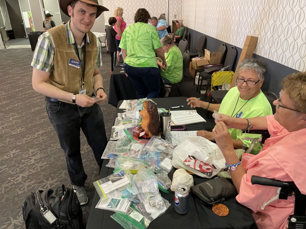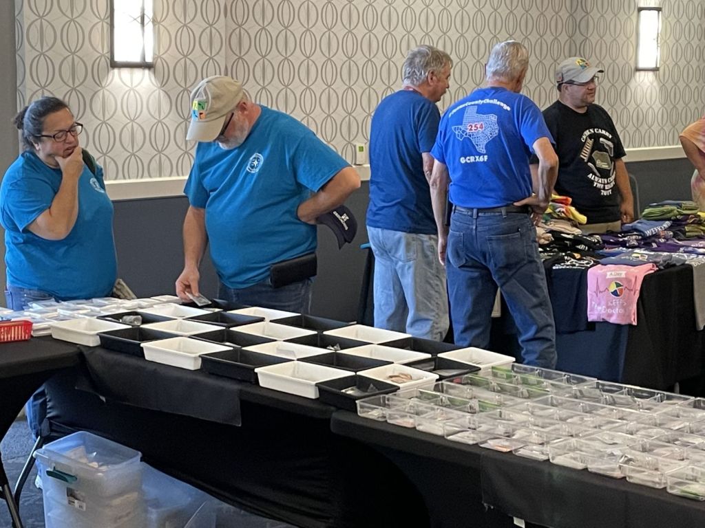 To say there were coins is an understatement. There were coins of every shape and type, newly minted and of ancient pedigree. I myself picked up a newly made Texas County Challenge coin (the old ones are incredibly hard to come by). I also got to discover an entire book of coins made by Moun10bike himself. Have you ever seen coins with two- or three-digit codes? Well, I have now. I spent most of my time working. As a representative of the TXGA, I, along with Carrot Killer, operated a booth selling coins and touting the merits of the organization. At least I got to hang out next to the trackable table …