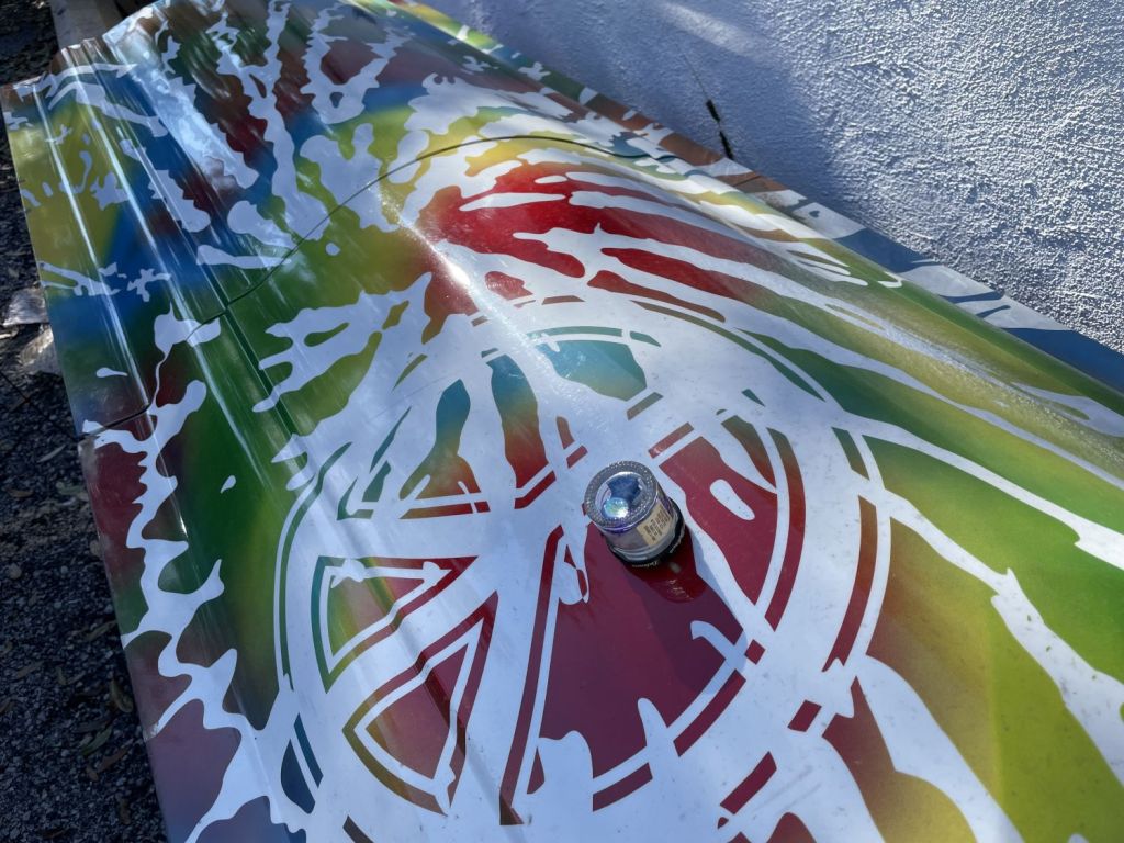Let us address the elephant in the room (or rather, the photo) first… I found a cache on a metal casket yesterday outside of a bar devoted to music icons who have died. I opted not to feature the murals dedicated to Austin legends Randy “Biscuit” Turner and Roky Erickson because I know the musical rabbit hole that would have started. Besides, I’m still kicking myself for not visiting the grave of Woody Guthrie while I had the chance, but that’s neither here nor there.