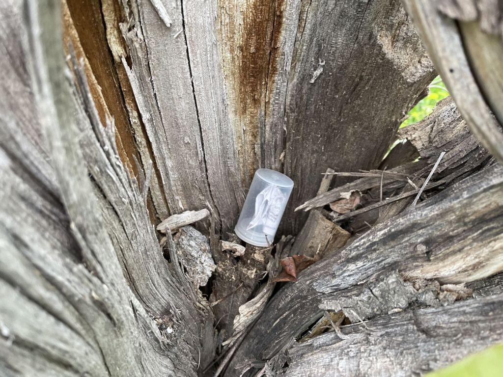 Another day, I missed out on an FTF. A couple of caches had dropped and still hadn’t been found the next day. Since they were both not far from work, I slipped out one day after a final afternoon meeting and went for them. The first one I ended up leaving alone because it turned out to be a night cache, and the location was … questionable. The second one was in a sizable hole in a large rock. I cracked it open to pull out the log, but there was a signature already on it. Poopy. But they hadn’t logged it, and it wasn’t a handle or name I had ever seen before. Maybe it was another cacher, maybe not. Since “First To Log” isn’t a thing, I’m going to assume that they’re going to get to it one day. Besides, I already have an FTF for the month, so it’s no big deal to me.