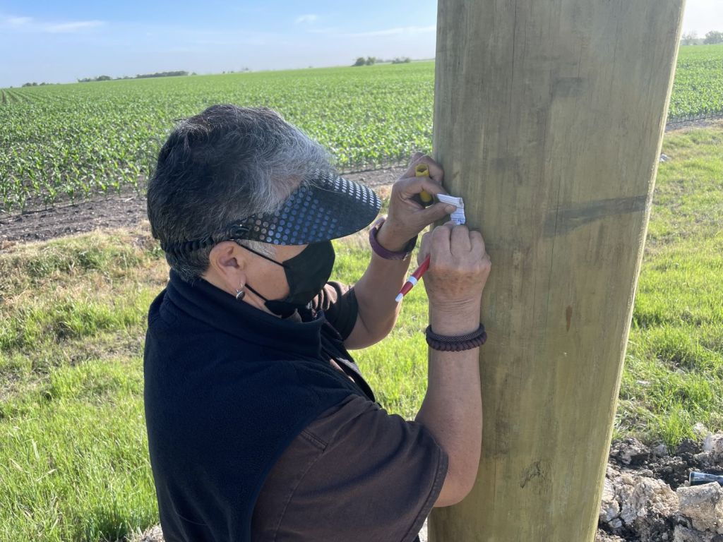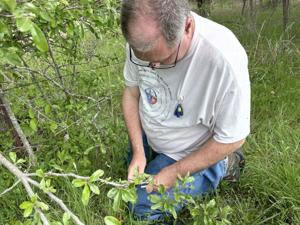 There was nothing new or innovative about our cache finds. We had found many similar ones on our last trip to the area: cap-n-caps, camo pill bottles, DNA tubes. Just as before, we spent quite a bit of time replacing DNA tubes crumbling from the unrelenting harshness of the Texas sun. A few telephone poles had recently been replaced, probably victims of recent tree-splitting weather. For those, as per CO instructions, we placed new tubes to be found. I must admit that the part of me that dislikes zombie caches felt a bit of pique. Cache maintenance is part of the price of owning caches and, outside of the occasional log or similar, should be done by the CO. In this case, I felt the need to let it slide. There were few we had to replace (about a dozen crumbling containers and a couple on newly erected poles), and the CO had recently been going through chemo so he had good reason to not do replacement runs out here.