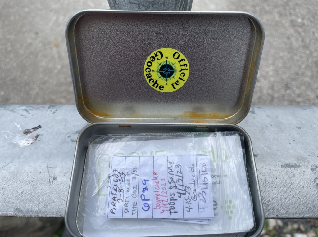 Saturday, I went out for a cache. Obviously, I found one. It was pretty disappointing, a plastic baggie containing a broken key box and a log in a hole in a tree. It was so crappy I specifically opted not to photograph it. I have often said (and still frequently say) that a cache is a cache is a cache. That said, I have, in my travels, found a few especially disappointing caches. The first time I saw a similar baggie that was the entire cache, I was puzzled for a while whether or not I actually found it until I went ahead and logged it to be archived. Boston (no, not that Boston) was also incredibly underwhelming as well (that’s probably from lack of attention, but that’s not important right now). Then, of course, I have never forgotten Sallisaw. That wasn’t a cache; that was a joke. But I signed it anyway, so you are more than welcome to note my hypocrisy.
