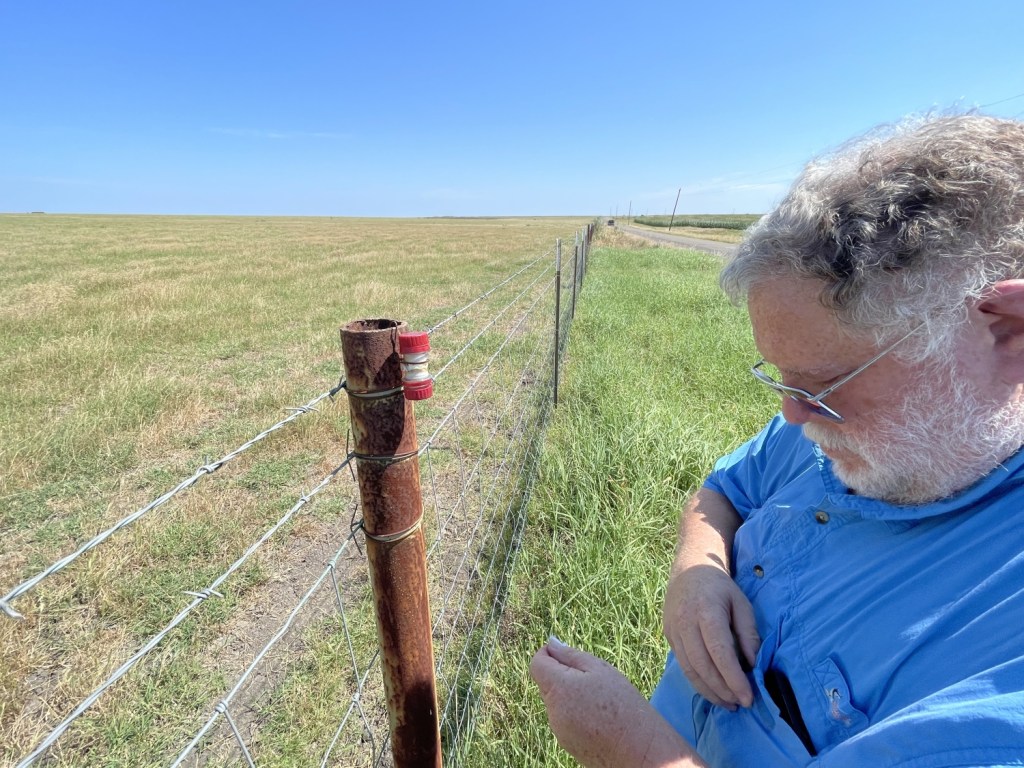 I ended up rolling with friends and SEF members Tygress and Waterweasel as we, like some kind of land pirates, plowed the the back roads in search of treasures unknown to the hands of man. We found caches. We helped and were helped by other cachers at times. We ate carne seca and cheese. It being the first truly hot weekend in quite a while, we hydrated like nobody’s business. There were so many guardrails, posts, and trees, many of which I had seen before because I had found caches in the same locations during the lives of the previous Geoarts. Of course, our hosts, being people, were imperfect. A few caches were missing logs. A few caches were just plain missing. At least one cache, its solution coordinates mistyped, was about 300 feet off, in the middle of a private cornfield. But it all worked out. Logs were replaced. Containers were hung where they had once been with required adjustments (we’re pretty sure one of them was swallowed by a cow, so…). Coordinates were fixed. Much of the day was filled with sweat, dust, and sometimes chiggers. And then…