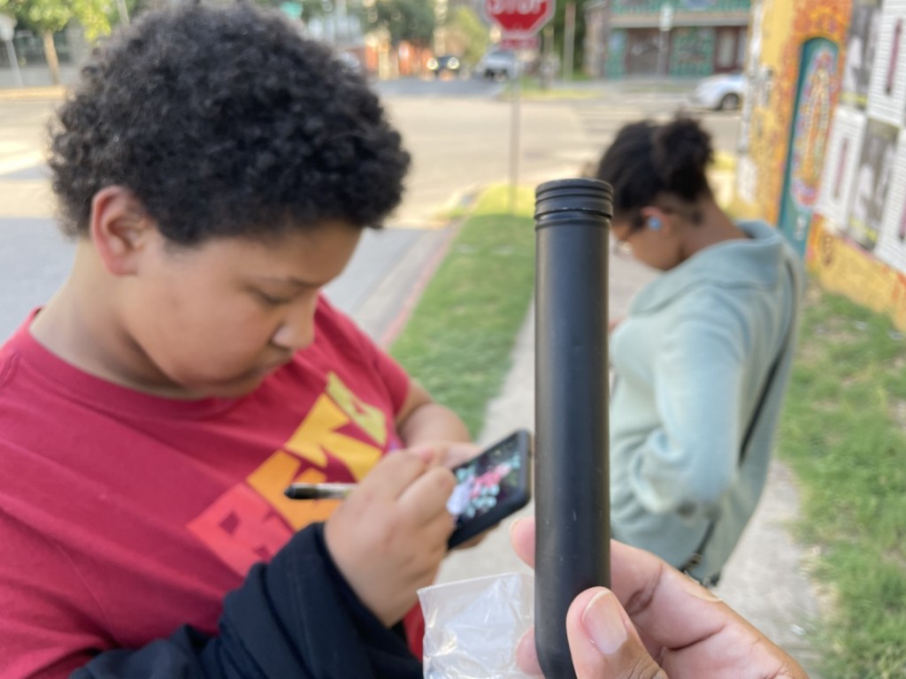 We ended up taking a back route into the more substantive town of Elgin, legendary for its hot sausage. It also had an Adventure Lab series devoted to the town’s history. Unlike the New Sweden series, they were spread out over blocks instead of miles, so we parked, got refreshing beverages, and walked around the historic downtown. Unfortunately, I wasn’t paying proper attention. We were so focused on the Labs that we missed a couple of Traditionals. At least one of them, we were literally on top of and didn’t know it until after. It didn’t matter, though. After a little more walking, we headed back to Austin with thirteen finds for the morning. For me, that was nothing. For my daughter, though, that was a 50 percent jump in her find total.