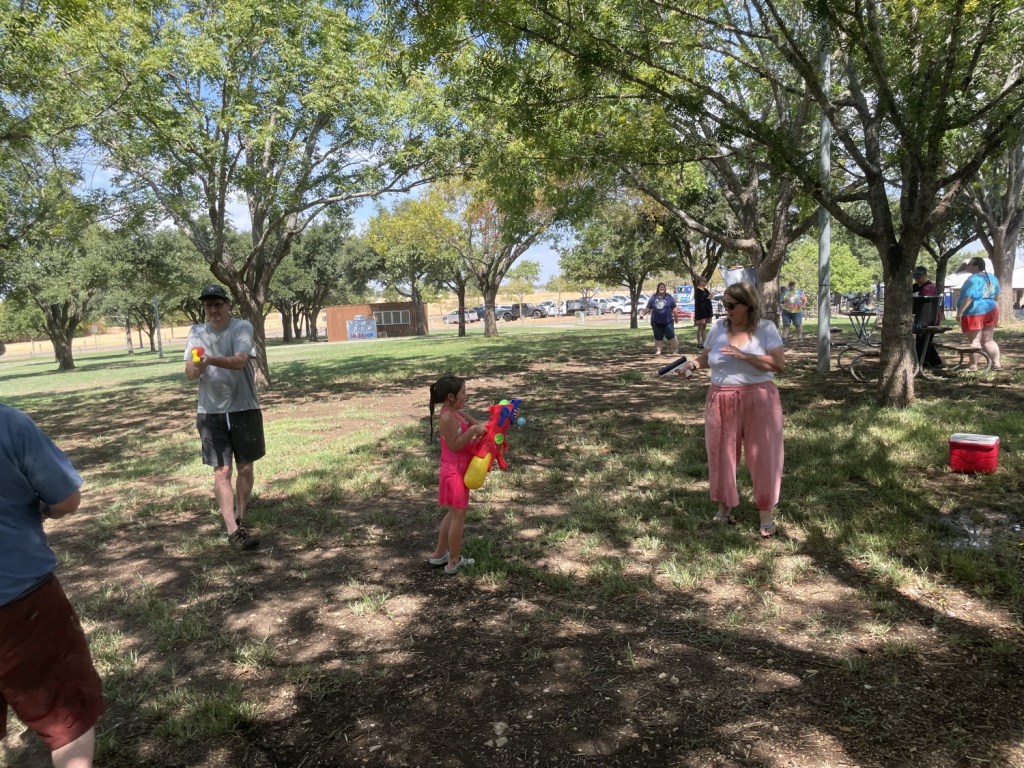It is hard to photograph people running around with water guns when you’re running around with a water gun, but somehow, I got a few action shots. Balloons flew. Water shot into faces and shirts. I came to play, but I did not come to play. I shot water at them all: the men, the women, the children … none were spared my aqueous wrath! For fifteen or twenty minutes, we chased each other in sprints and circles, laughing and taunting each other the entire time. And woe to those who arrived after the battle began! We “enemies” easily agreed that the fresh meat to the grinder were the targets to unite against!