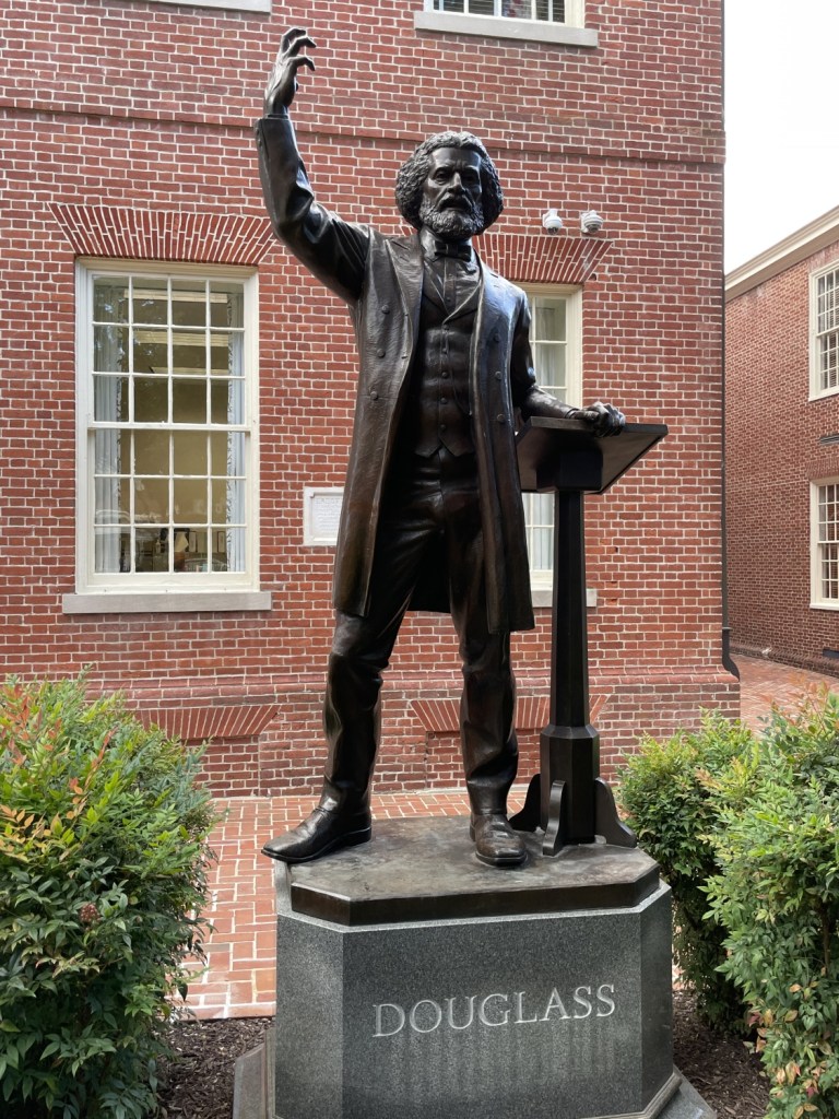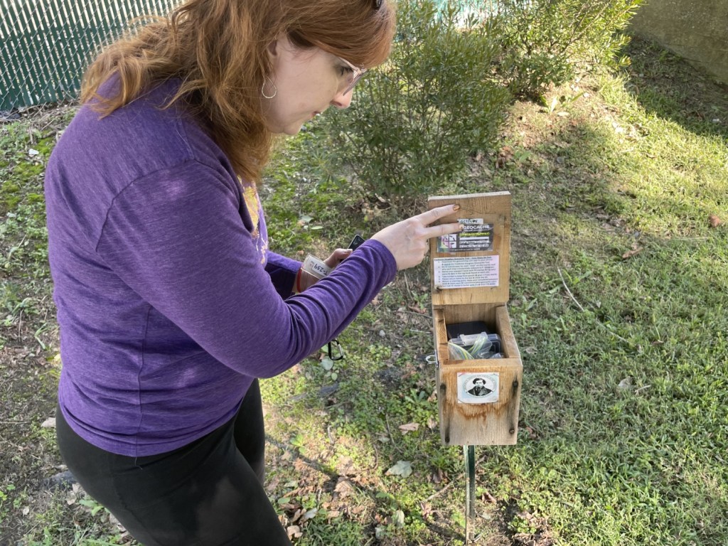 The cache for the county, as you can probably imagine, ended up being a Douglass-themed one. We had decided on a Virtual, half of which was based on his statue at the courthouse, the other half based around a mural on a nearby park trail. The other group beat us to the courthouse and told us to stop at the mural before we got there. With our information combined, we accomplished our goal!