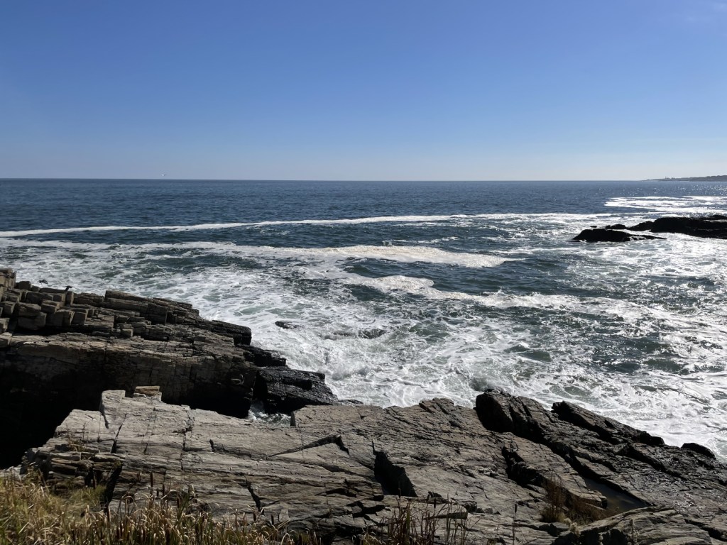 Then we got to the important work: lunch! We stood in line for world-famous lobster rolls and then found a park bench in a beautiful grassy spot from which we could watch the ocean while we ate.