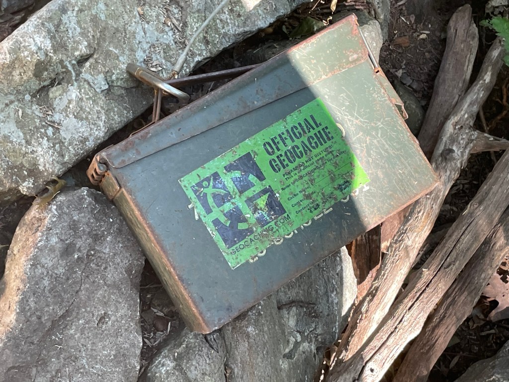 Ladies and gentlemen (or however you identify—I don’t mean to be gender assumptive), I give you The Fort Williams Cache, the oldest cache in Maine! We put both collective and individual ink on the log. We even took a moment to do the selfie and everything.