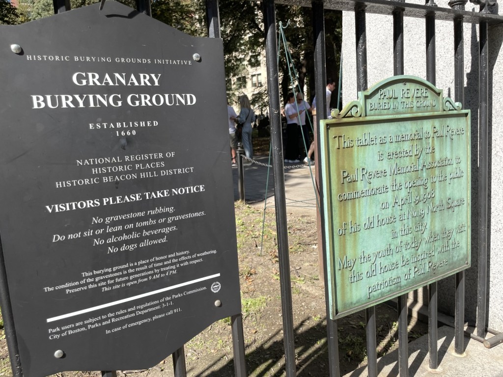 One of the oldest cemeteries in Boston, the Granary Burying Ground lies square in the middle of the city, a block from the Common. And it has a few famous graves in it, among them …