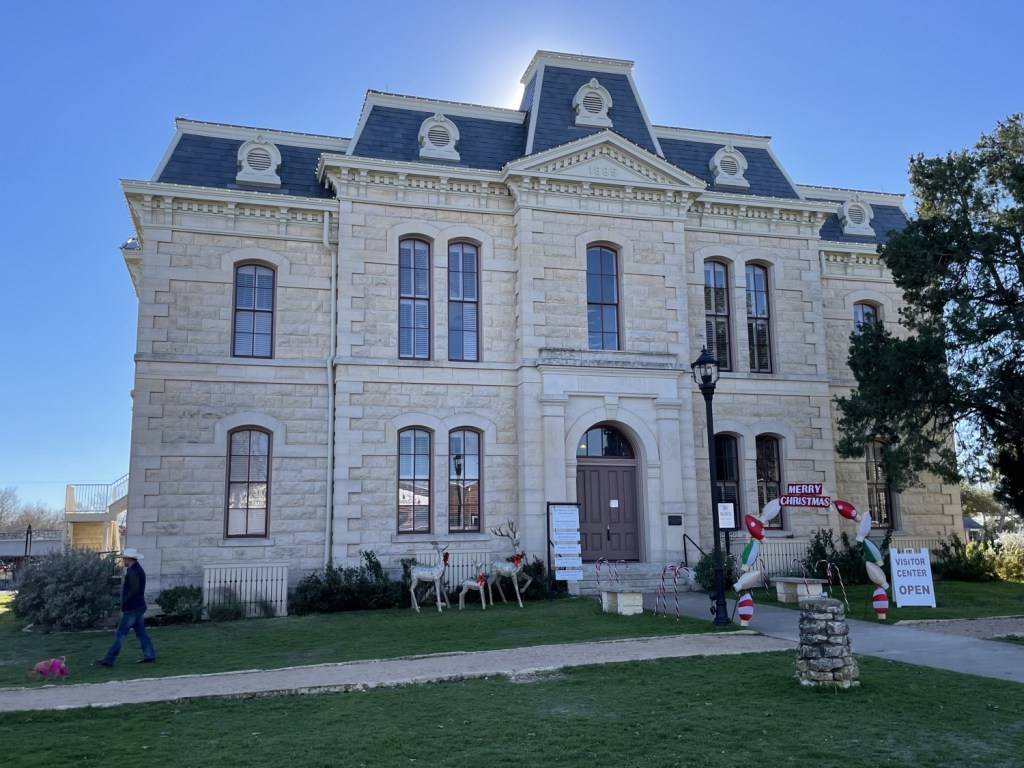 Passing through Blanco, the former seat of Blanco County, I came across an old courthouse! You bet I took a five-minute detour to check it out! I had previously wondered why Blanco was not the seat of the county it shares a name with. Turns out that a county vote heavily influenced by the Johnson Family moved it, leaving behind a barely used courthouse. It’s now home to offices and the county historical museum, and they rent the top floor out for functions. It crossed my mind to maybe have an Event here, but I doubt it would be inexpensive enough to justify the cost. That wasn’t the important thing, anyway.