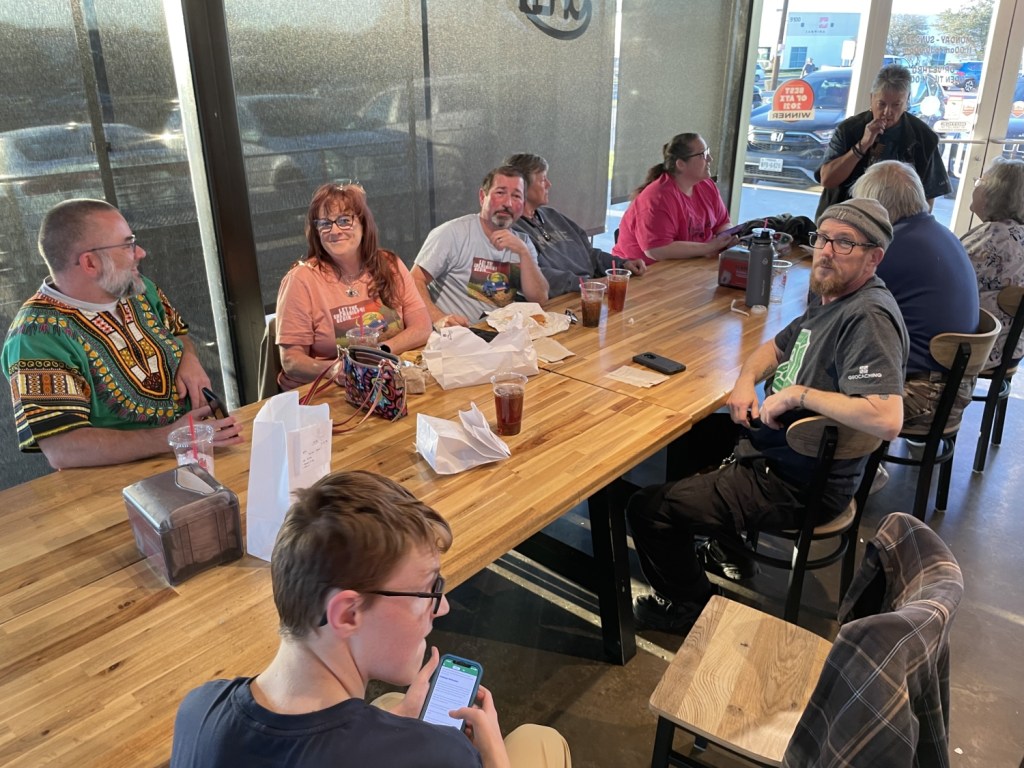 … it becomes necessary for one region to prepare a competing team for Texas Challenge, odds are incredibly good that corresponding Events will be held to prepare and plan our ultimate victory over the foul and most foreign interlopers from the other regions. This time, though, it was less deep planning and strategy and more an excuse for a bunch of cachers to gather and have some burgers while those of us competing discuss ideas. I’m not captaining the team this year. Since the girls are coming with me to Challenge this year, it is more important for me to be a good steward of my children than to command the team. Team Bklyn (BklynTex1015 and TexBklyn1015) has graciously accepted the challenge (you see what I did there?) to lead us to victory (or mild annoyance)! Unexpectedly (to me), a pair of newer cachers from Georgetown came down to join us at the Event! It’s always nice to see new folks. Not that long ago I was them, new and inexperienced, sheepishly meeting folks who had been in the mix for a long time, never suspecting that some would become good friends. I can only hope we’ll be seeing more of these two.