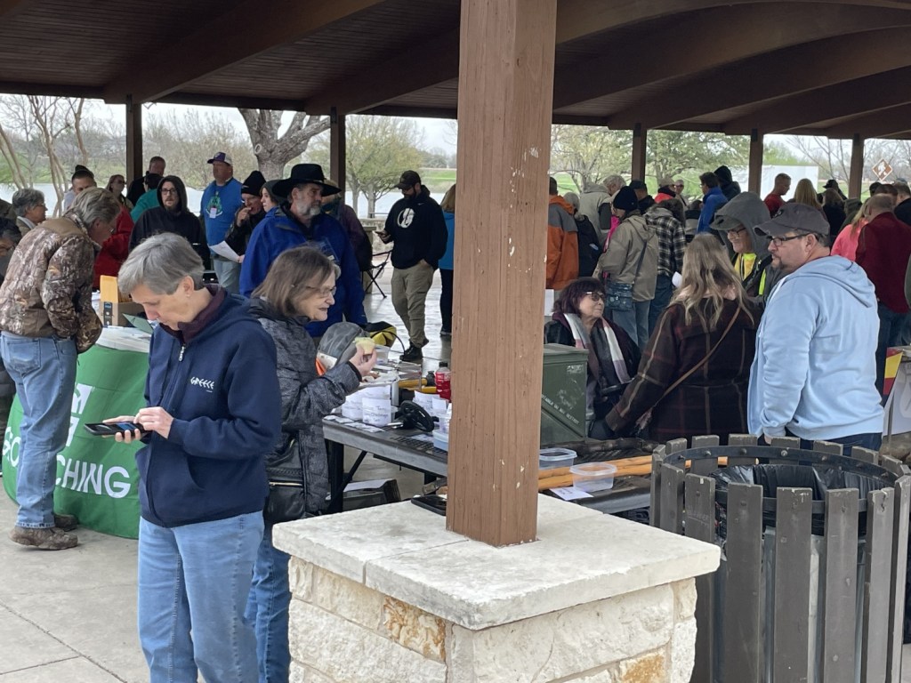 A great many of us gathered for a sunrise CITO. This brought on another wave of joyful greetings as friends from other regions of the state said their hellos. We took to the grounds of the Texas Czech Heritage and Cultural Center and the Fayette County Fairgrounds, taking up the beer cans and used condiment packets that lay strewn about (though that probably sounds more poetic and sizable than the detritus warranted). We also took some time to grab a couple of challenges nearby that most of us agreed we would likely never find. (Five EarthCaches in each of fifteen states? Nope)