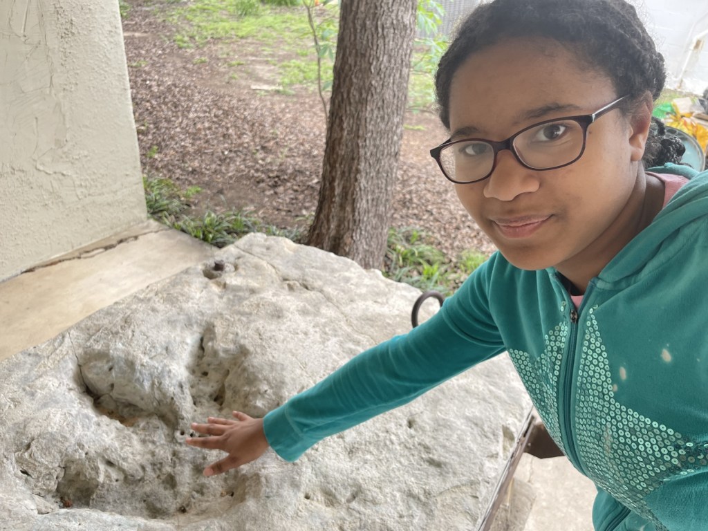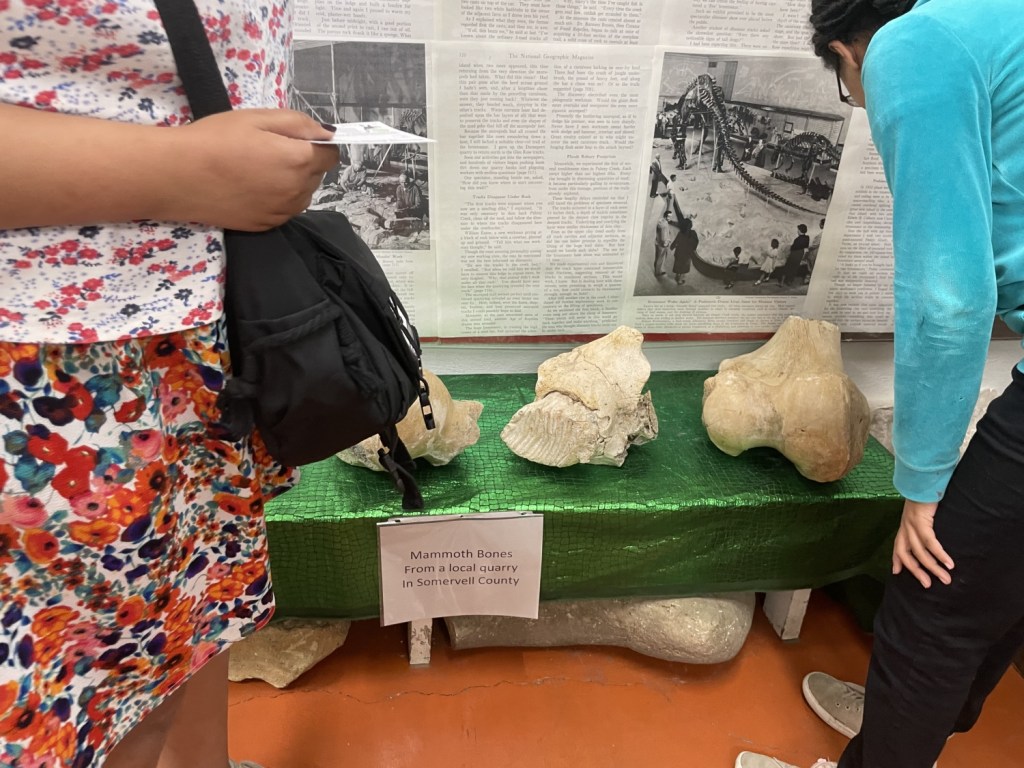 … I visited a few old friends (and by “visited,” I mean photographed from a moving vehicle). But since I was carting the girls along with me, I made an extra stop for their sakes so I could claim that there was educational value to the trip. We stopped in Glen Rose to take in the fossils and petrified wood all over the place.