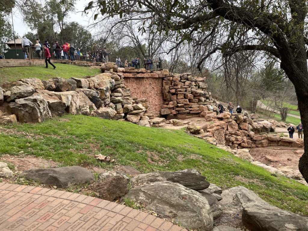 … the actual Wichita Falls. Fun fact: soon after the city was founded, the falls were destroyed in a flood, so the city built a waterfall in the location of the original falls. Unfortunately (and this is a sentence I never in my wildest imagination thought I would ever type), the city did not turn on the waterfall for us. Never fear, though! We were resourceful! We all got cups of water to toss over the edge, singing “Waterfalls” the entire time. Unfortunately, in my exuberance …