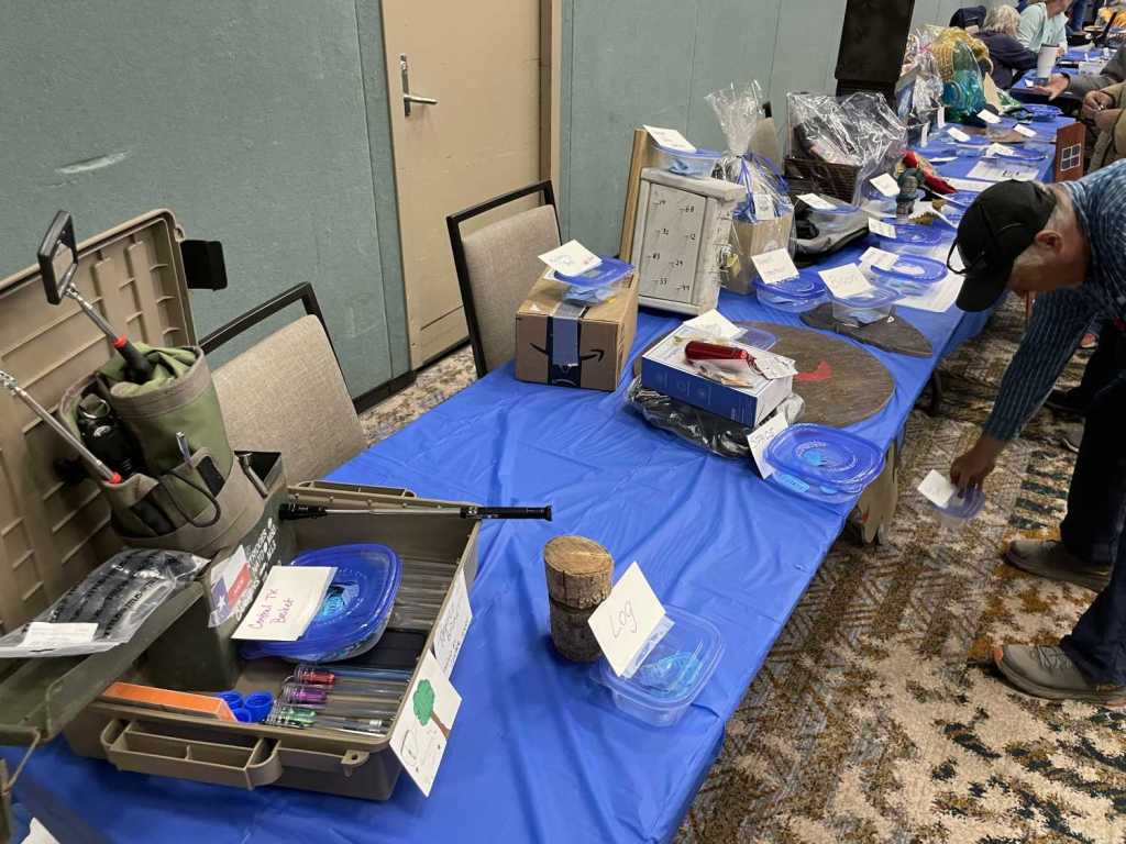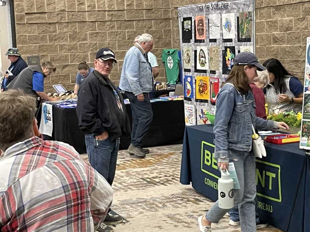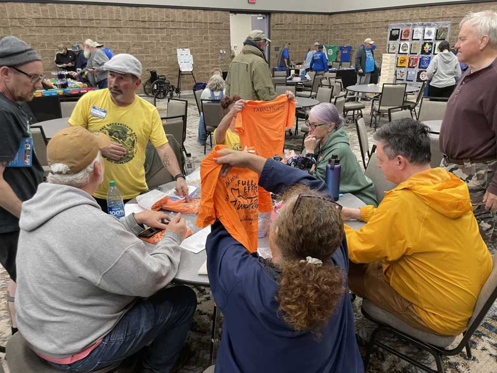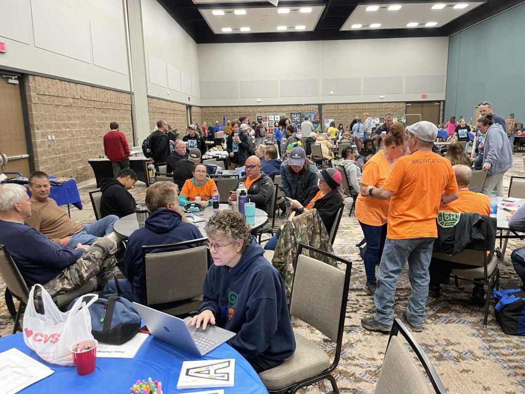 We gathered to commune with our brethren and sistren (and get our registration packets and swag). Stories and plans flowed like the water I can only imagine cascades over the falls when they are on. We heard about friends (members of the TexaSix) who went to get counties in Oklahoma, Kansas, and Colorado. We heard about farmers stealing obvious containers from along the back roads. We hung out with Signal as he went around the room, schmoozing with people, shaking hands, and kissing babies (at least he would have had there been any actual babies in attendance). As a sidenote, there were lots of kids running about and enjoying the kids table. As a further, more personal sidenote, another family of Black cachers was also in attendance, the first one I’ve seen at Challenge! I got to meet the parents, but I didn’t manage to get their caching handles. More’s the pity.