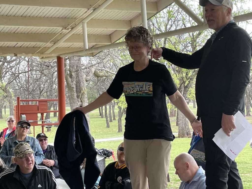 The next morning, instead of a breakfast event, there was a geocaching version of the Highland Games! It began with breakfast “stimulants” (donuts, coffee, juices, etc.) and continued with an ammo can toss (with different can weight categories), a balloon stomp (competitors have balloons tied to their ankles, and the last person with an un-popped balloon wins), and dog caching (each human and canine team had to find caches with treats in them), among other events.