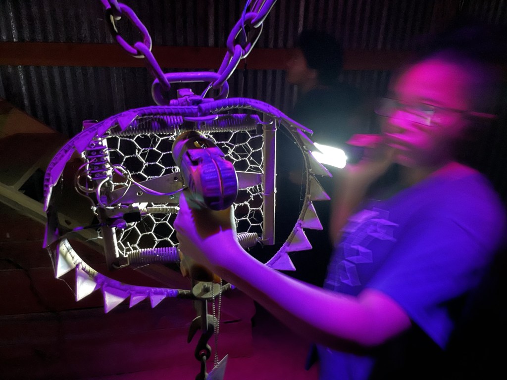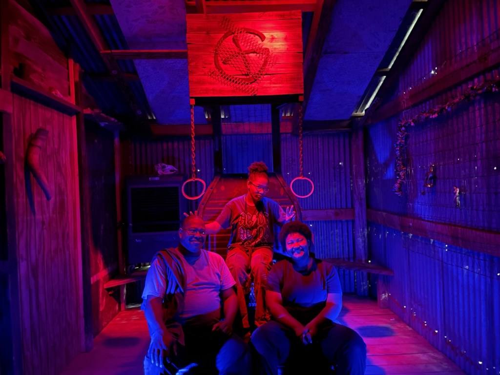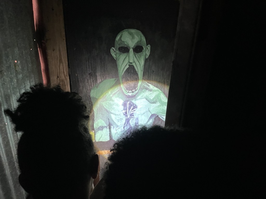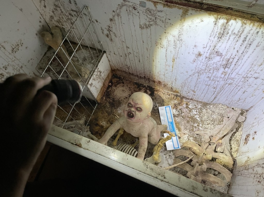 In the morning, we had an appointment. It was not in Samara, but it might have been just as dangerous. I have always felt that the Necropolis at Britannia Manor was the best cache I have ever found. But I had long been hearing rumblings of a cache outside Oklahoma City that could be a competitor. Based on expected Mega-Event visitors, an appointment website was set up for it, and I had booked an appointment. The girls and I arrived on-site and came face-to-face with one of the most daunting challenges we would ever face together (in a geocaching sense, that is). When the time came, we opened the door, pulled the power switch, and entered the Infernal Device!