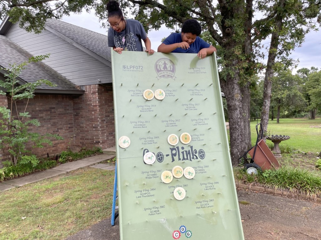 I’m not entirely sure if this is the better cache; I’m still mulling that over. But it is unquestionably on the short list of best caches ever. My only regret is that I could not give it more than one of my stingily hoarded favorite points. Once it was conquered, we played some Geo-Plinko and did a Mystery Cache on the property, which my muggle daughter gets all the credit for solving (she’s a great tree climber and a good puzzle solver, so why she doesn’t want to be an actual cacher is beyond me, but that’s not my decision to make). But we soon had to leave. I had to go to other appointments, one at a costume shop and one at an Event.