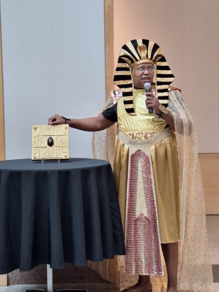 I played the Pharaoh Ahkmenrah. I was thronged by visitors seeking the answer to one of the Labs, seeking to know what it was that I truly craved. I educated those who would seek to know the mind of a pharaoh. I wished not for the desires of mere mortals. I sought not wealth, for gold flowed from my house as the waters of the Nile. I sought not lands, for they stretched from the rising sun above the great delta to the setting sun in far Ethiopia. I sought not subjects, for mine numbered as the stars in the heavens. I sought not power, for the shadow of my outstretched hand darkened the world if I so desired. All I wished for, all I demanded was a simple thing, an ephemeral delight …