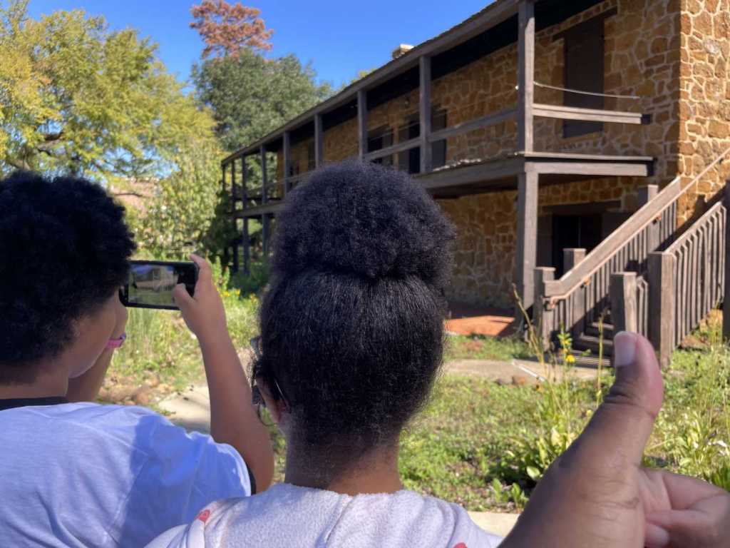 Mistake number two was underestimating the bugs we would encounter. With Rusk County behind us, we continued to Nacogdoches. Our non-Traditional was on the campus of Stephen F. Austin State University at the remains of an old stone fort, which turned out to be not a stone fort, just an old building that fulfilled many different roles over its lifetime, actual fort not being among them. Our Traditional (technically, my daughter’s Traditional, as I already had one) was in a cemetery near a monument dedicated to Thomas Jefferson Rusk, namesake of both Rusk and Rusk County. Once again, the shade gave solace to mosquitoes, and therefore, we acquired more bites. I also managed to do a quick Adventure Lab stage we were standing on top of, but since we were done with the county, we cut and ran. The bugs technically won that one …