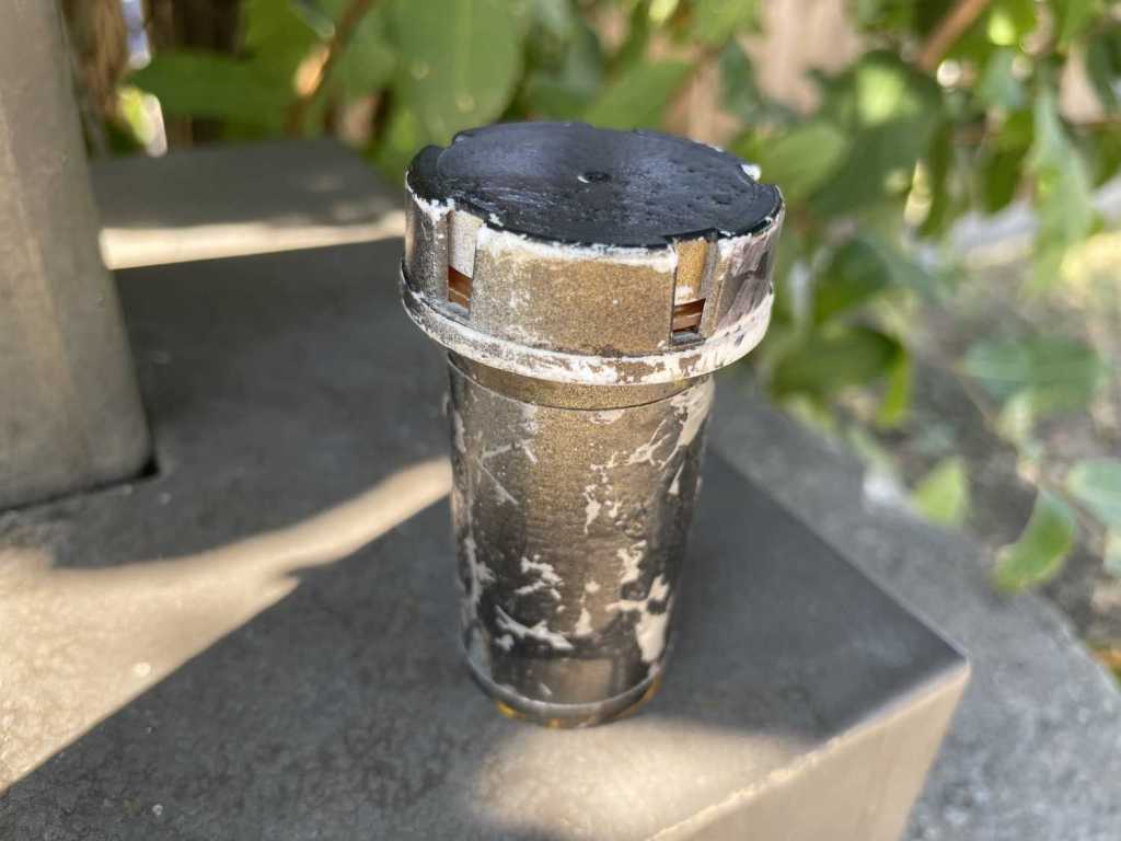 Another cemetery in town that I hadn’t visited before had two caches. The last person to look for them couldn’t find either of them, but they only had ten finds, so what did they know? More than I gave them credit for, I guess. I also found neither of them. So I decided to try one from a series along a road passing through town. I drove to an outer neighborhood and attempted one that had last been found a couple of months before. I was a little uncomfortable looking for it because it seemed close to a person’s yard, but I was able to pass myself off as examining a phone junction relay at GZ. It was all for naught because I couldn’t find that one, either! What the heck? I was zero for five over here! In a fit of desperation, I opted to cherchez la easy and go for an LPC in a hotel parking lot. I pulled up to the lamppost to see that there was a cable installed on it that prevented me from lifting the skirt! Are you kidding me? Except the back could be lifted, leaving enough room to slip in my fingers, and voilà! There was a pill bottle just within reach!