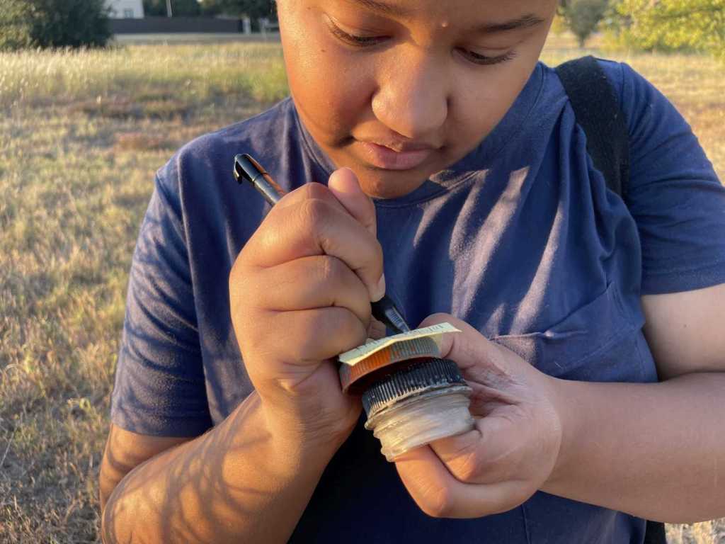 Sunday, I dragged my cacher, this time without her sister, to Round Rock for the daily cache. When I looked at a map to decide where to go, I saw one I had gone after in my early days of caching but never found. I also noticed it had been found the day before, so why not. She helped me find my unofficial DNF from the early days of caching. Having found it, I’m 95 percent convinced I was just looking at the foot of the wrong tree the first time, as it was the obvious place since it was more rooty, branchy, and viney. The actual hiding place was disappointing, to say the least: the foot of a dead and pruned bush. Of course, back then, I was far more fixated on correct coordinates. I hadn’t yet internalized the vagaries of positioning and the importance of that plus or minus thirty feet we all know and loathe. One more smiley was good enough.