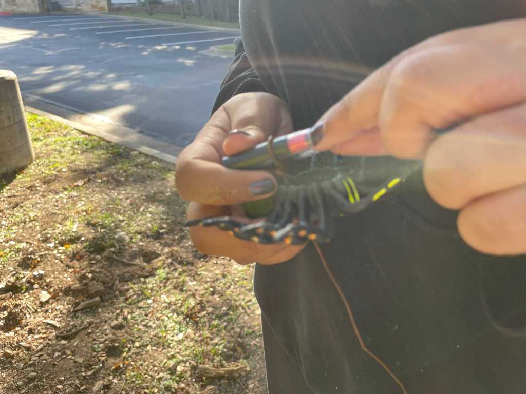 The girls came into town Saturday morning for a slightly extended stay since they don’t have school Thanksgiving week. Unfortunately, I still have to work part of their stay, but we’re crossing that bridge now. Once they arrived, they helped me find a daily cache, a spider hidden in a tree. Its location was at “eye level,” but that varied depending on if you were at the top of the retaining wall or at the bottom in a wooded area. But find it we did and then got on our way to a home improvement store (one that rhymes with “toes,” not Home Despot). I had to pick up a few items for some cache maintenance: spray paint, plumbing cement, and an eye hook. I’ve had a cache I needed to replace for quite some time, but it’s a big deal to rebuild. I’ve also had a couple of simpler ones go missing. So, I needed supplies.