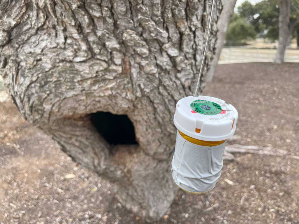 A couple of days ago, I went out to a park to look for a cache. It was a return visit; a few weeks ago, my caching daughter and I went out for an FTF, and the cache wasn’t there. A few other cachers made the same attempt and noted the same deficiency. The CO finally noticed and put a cache where it was supposed to be. It sat for a while, most likely because nobody wanted to try it again (the other cachers live farther away than they probably wanted to travel for it). I swung by and saw a wire in a giant knothole, and at the end of the wire was a cache. Almost a month after first attempting it, I signed the log—another FTF in the books. I only wish my daughter could have been here to get it with me.