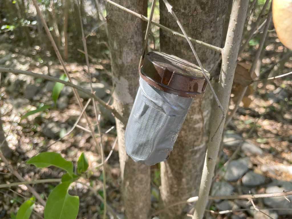 The description made it seem easy enough: at ground zero, there was a building with a sign, and I had to get “Michael’s” phone number from it, fiddle around with some of the numbers, and then my corrected coordinates would be revealed. Unfortunately, at some point between the previous finder in February and my attempt, the building had been demolished. The sign was still there, but it was blank. For a moment, I was disappointed, but I thought that having lived here all my life, I could figure out the problem myself. My train of thought, however, was as flawed as that premise, considering I’ve lived in Austin, not Round Rock, which only feels like home because of proximity. Based on whose phone number I had to find, well, I immediately thought about the craft store of the same name and, though the demolished building was nowhere near large enough to house said business, called another location in hopes that they would have an old store listing with the phone number. Of course, they couldn’t help me because it’s difficult to find a black cat in a dark room, especially when there is no cat. But a hero has friends. This hero made a phone call to one of those friends, who happened to have the phone number because (a) he makes notes on everything, and (b) he knew that the phone number was for the office of one of the building’s longtime tenants, Michael Something-or-Other (possibly of the New York Something-or-Others). With the phone number, I could ascertain coordinates and find a pill bottle hanging in a small grove of trees nearby. I was rewarded with a miniature matryoshka egg that would have been the envy of the House of Fabergé.
