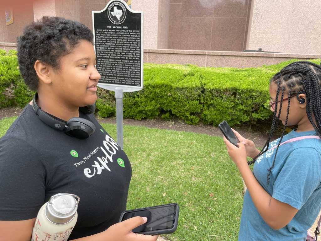 I decided to run them down to the capitol to grab a few. It was a nice change to get a walk before the heat of the day (that never really materialized because of a lingering threat of rain) and grab a few Virtuals. A new Adventure Lab series and some overlapping Virtuals had recently appeared on the grounds, and a new Multi had dropped a few blocks away, so it was a perfect time to get them some finds and find my cache for the day. We started across the street at the State Archives for a Virtual devoted to the Texas Archives War. For those of you not acquainted with Texas history, at one point, there was an attempt to move the state archives from Austin to Houston, which would have the effect of moving the capital. Local residents prevented the removal of some of the documents and then managed to shadow the wagons carrying them until an armed force from Austin recaptured the stolen documents and returned them to Austin the next day.
