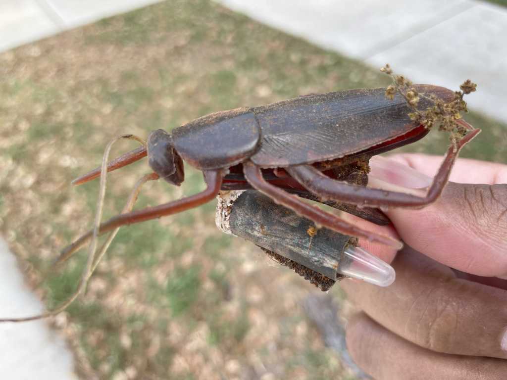 I walked up to the bench where the old cache was supposed to have been, but after rechecking the map, I saw that this new one was in a nearby tree instead. And after finding the appropriate crack, I was rewarded with a fake roach and a log.