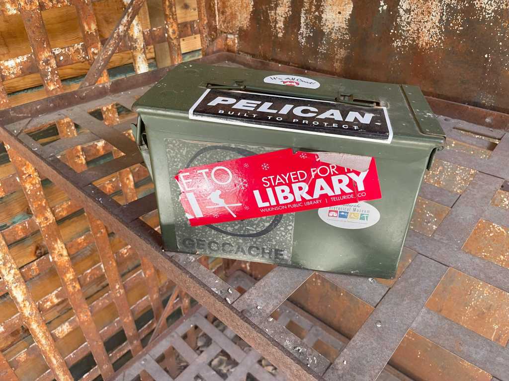 …sat an ammo can waiting to be opened! With nary a peep from the law, inveni, inscripsi, reposui. And with that, I beat a quick retreat back to the car. I made my way across the parade route again back to my mildly illegal parking job (to be fair, the entire town was illegally parked at that point), and made my way around the throngs to the road out of town. I looked up at the turnoff toward the Imogene Pass with a very rare longing not normally exhibited for mountain passes, but continued out of town. I would rather have gone up that way, but I certainly didn’t have the vehicle for it. That meant that meant that nine miles and a fifty mile drive away lay my next destination…