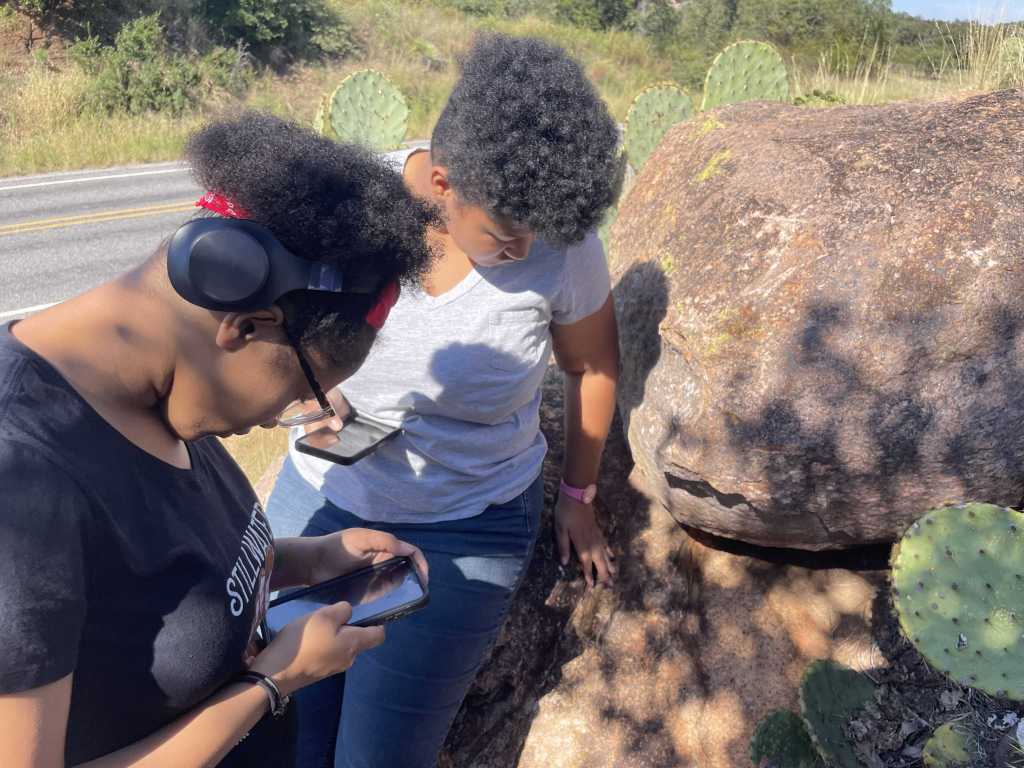 The Girls and I mounted up in the car early-ish and began driving north and then west. We had a mind to get at least five new counties for their (though actually just the older daughter; the younger one confirmed she’s just doing stuff because she’s along for the ride) project. Our first target was San Saba because the last time we were in the area, we managed to drive entirely around it. However, we didn’t take the fastest route; we went through Llano. Why? Because it was International EarthCache Day (or thereabouts) and there was an EarthCache just south of the San Saba border. We took some time to learn a little about llanite, an igneous rock containing quartz and feldspar phenocrysts (I learned a new word!) unique to Llano County. We managed to not fall off boulders or get stuck by cacti as the younger daughter measured the size of the crystals (I remembered to bring a tape measure this time).