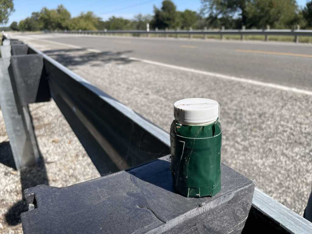 From there, we proceeded to Comanche. I wanted to take them to my first cache there, the ammo can in the teepee, but it was archived. We signed the Comanche County Challenge, but didn’t log it as we were missing a couple of counties and one of them was not on our itinerary for the day. But we did take the time to stop for a Traditional in a cemetery and a Letterbox on the side of the road.