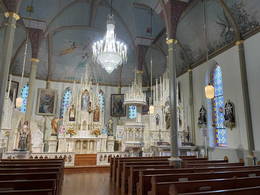 Once we were done with our hiding for the day and had lunch, Razorbackgirl and I split off for another caching project. There was an Adventure Lab series devoted to traditional Czech painted churches so we took a little trip out to see them since they were so close. I’m not religious by nature, but I am a sucker for some attractive architecture. Our first visit was a bit of a bust: the information we needed to answer the Lab was there, but the building itself had been destroyed a few years before in a gas explosion. The rest were lovely. I didn’t know about the Czech tradition of decorating their church interiors, so a pink church or a ceiling populated with painted stars or music playing angels was unexpected. The interior of one of them was described as being like a Faberge egg. It did not disappoint. When we arrived at one of them, we were at the tail end of a wedding. We avoided entering that church lest we interfere with the wedding pictures, but in the end we were invited to join the party at the reception! We demurred because we were on a mission (and joining a wedding reception of people we didn’t know seemed weird). Along with the painting and decoration, I learned of an interesting way the paint was used. Apparently, churches back in the old country were festooned with marble. Texas, however, isn’t known for its marble deposits. So the painters emulated marble by painting wooden columns and altars white and using turkey feathers to apply veins and striations.